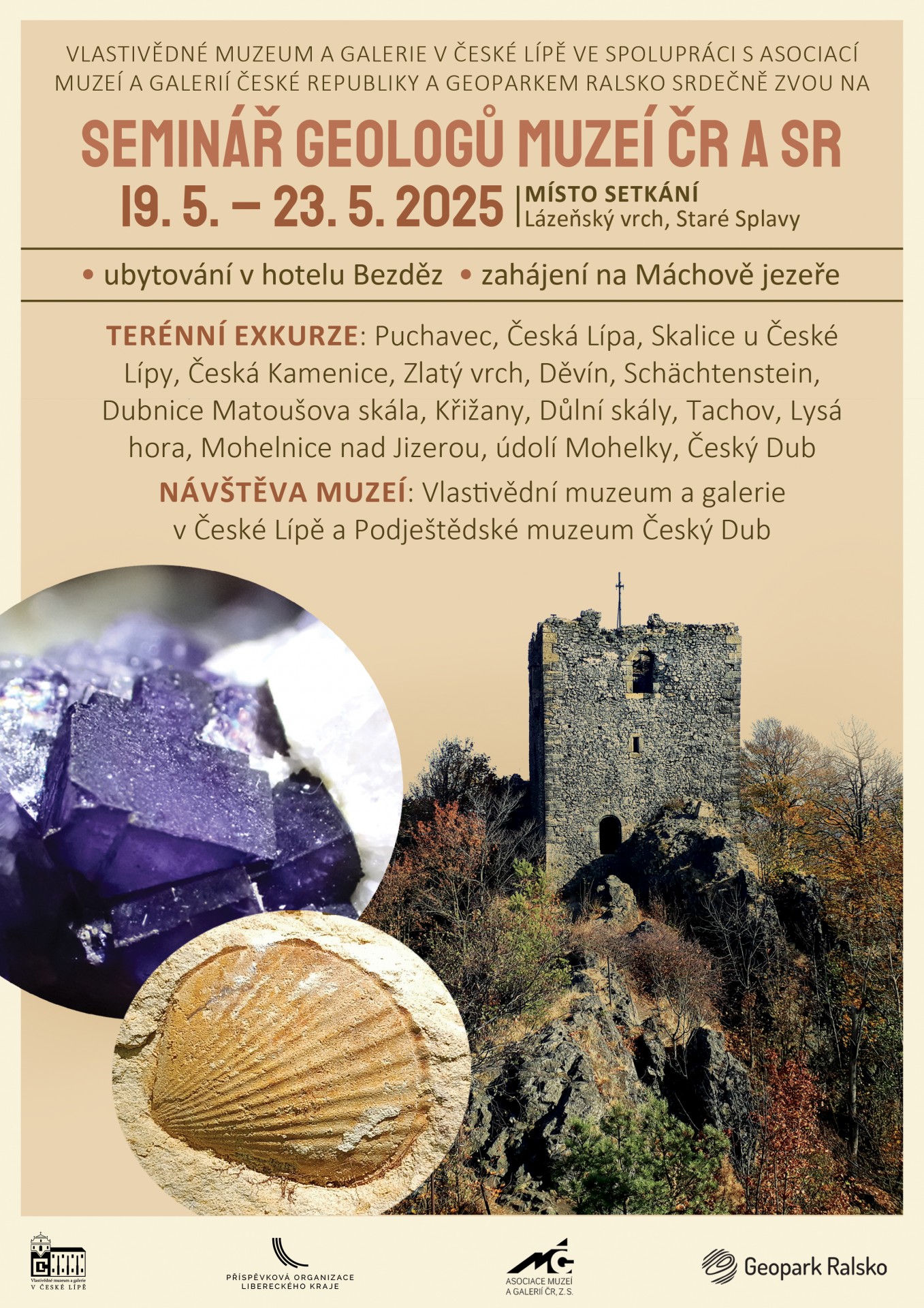 Geologická komise Asociace muzeí a galerií České republiky, ve spolupráci s Vlastivědným muzeem a galerií v České Lípě a Geoparkem Ralsko, pořádají ve dnech 19. až 23. 5. 2025 Seminář geologů muzeí České a Slovenské republiky.