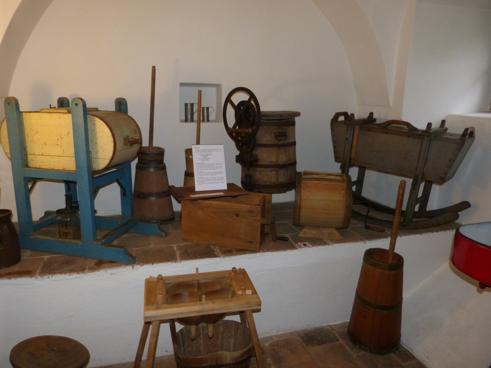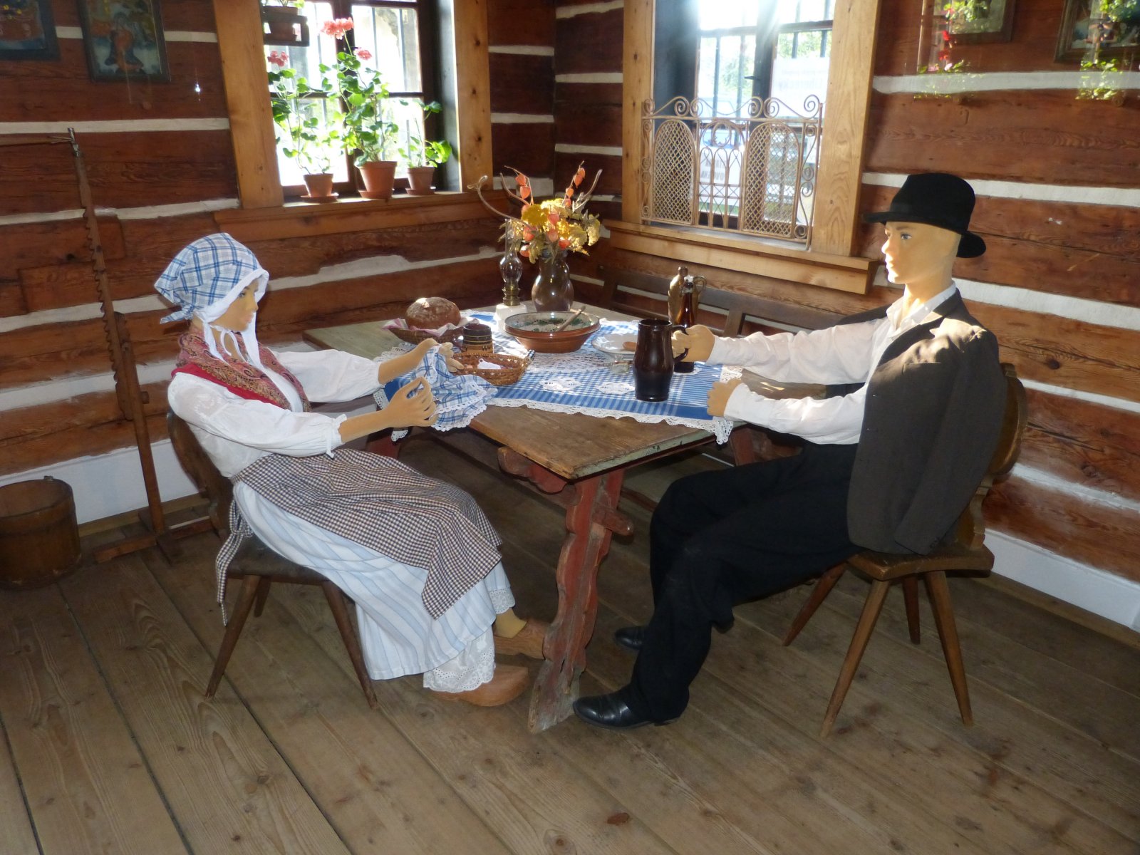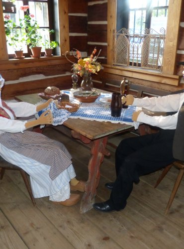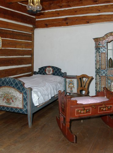 Přízemí domu návštěvníky zavede do bohatého selského hospodářství na počátku 19. století. V rychtářské světnici, výminkářské světničce a černé kuchyni s pecí je vystaveno vše, co bylo tehdy k životu potřeba. Na obytnou část domu pak navazují hospodářské prostory. Spížní komora neboli kvelb je věnována zpracování mléka. Expozice v bývalém chlévu zase ukazuje, jak praly a žehlily naše babičky.